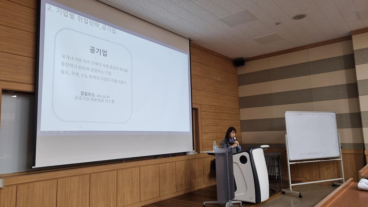 이번 특강은 취업 및 면접 전략을 공기업/ 사기업/ 외국계 기업 / 대기업으로 분류하여 각 기업별 취업전략에 대하여 설명하였습니다. 취업전략도 좋은 자소서 쓰는 방법을 예시와 함께 설명하여 졸업 전후로 취업을 준비하는 학생들에게 실질적인 도움이 되었습니다. 정규직 취업 뿐만 아니라 인턴을 지원할 경우도 예상하여 함께 설명 하여 많은 학생들에게 도움이 되었습니다.