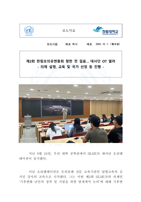 제2회 한림모의유엔총회 향한 첫 걸음… 대사단 OT 열려