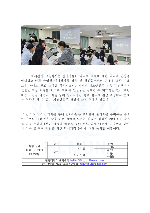 안녕하세요, 제2회 HLMUN PRESS팀 입니다.