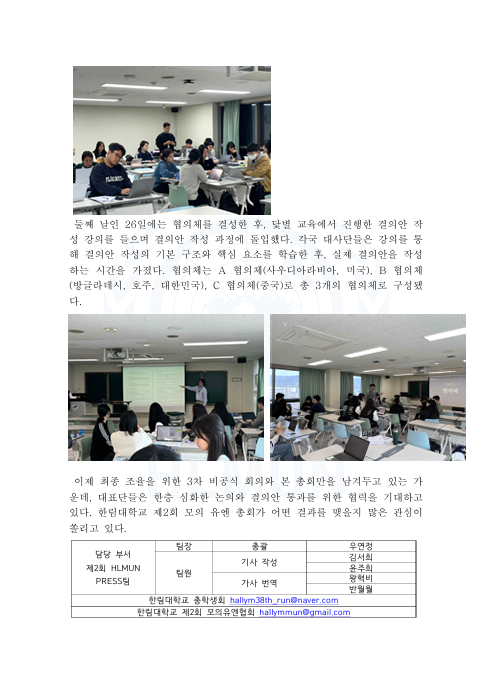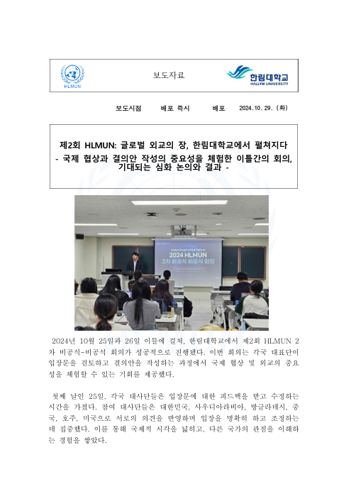 제2회 HLMUN: 글로벌 외교의 장, 한림대학교에서 펼쳐지다