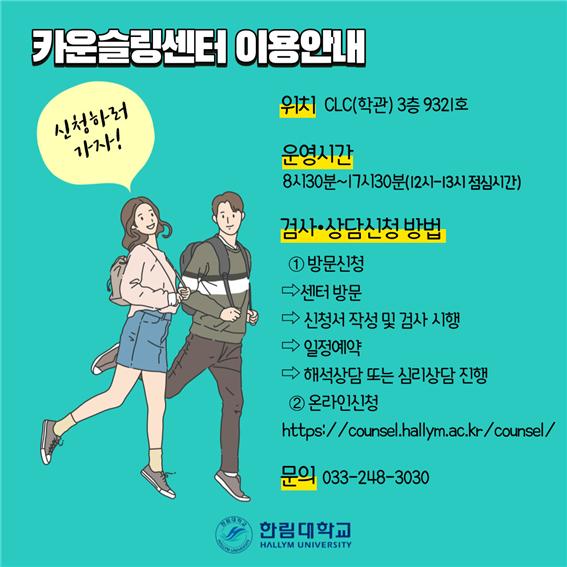 한림대학교 캠퍼스라이프 카운슬링센터입니다.
