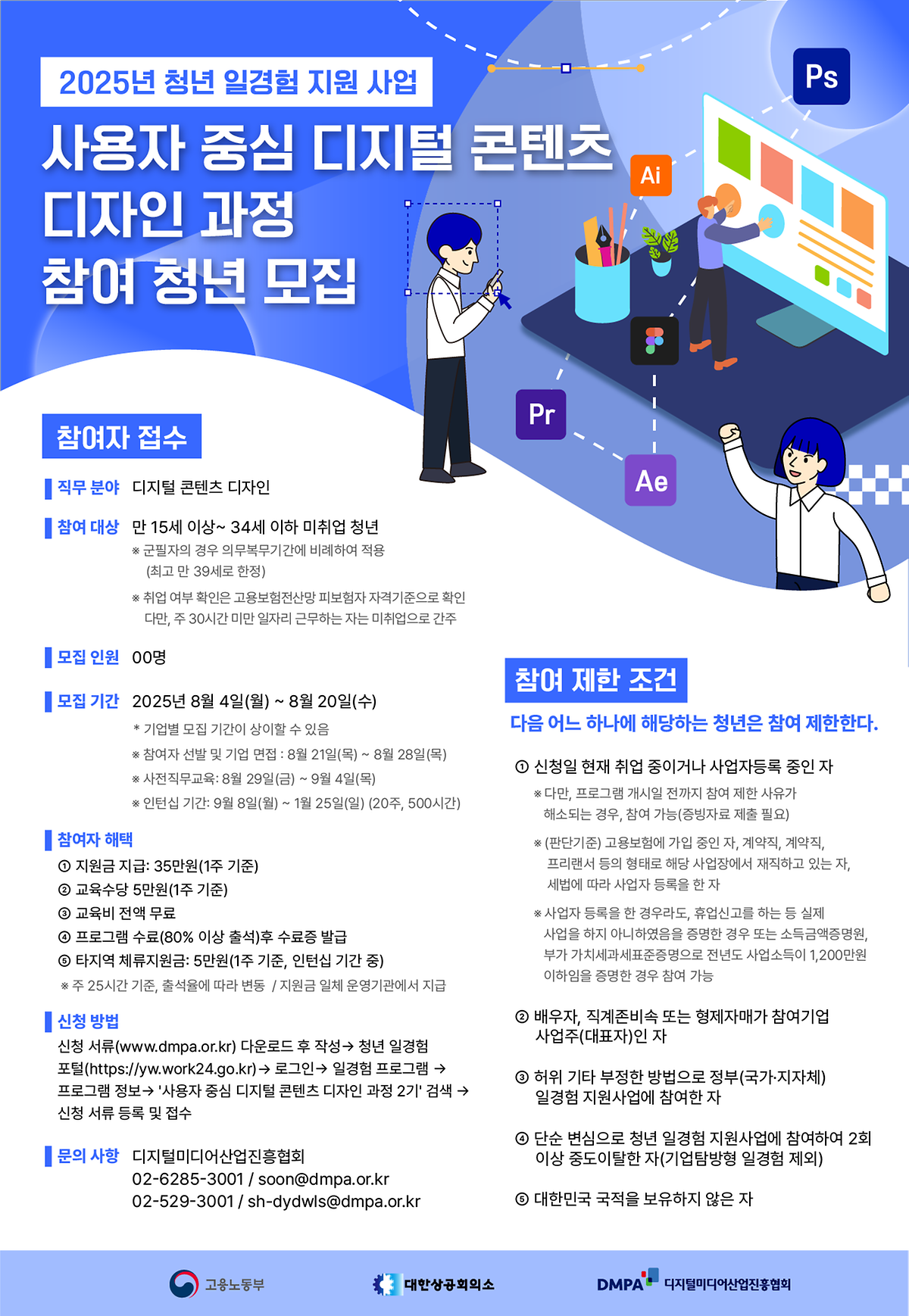 [2025년 청년 일경험 지원 사업] 사용자 중심 디지털 콘텐츠 디자인 과정 참여 청년 모집