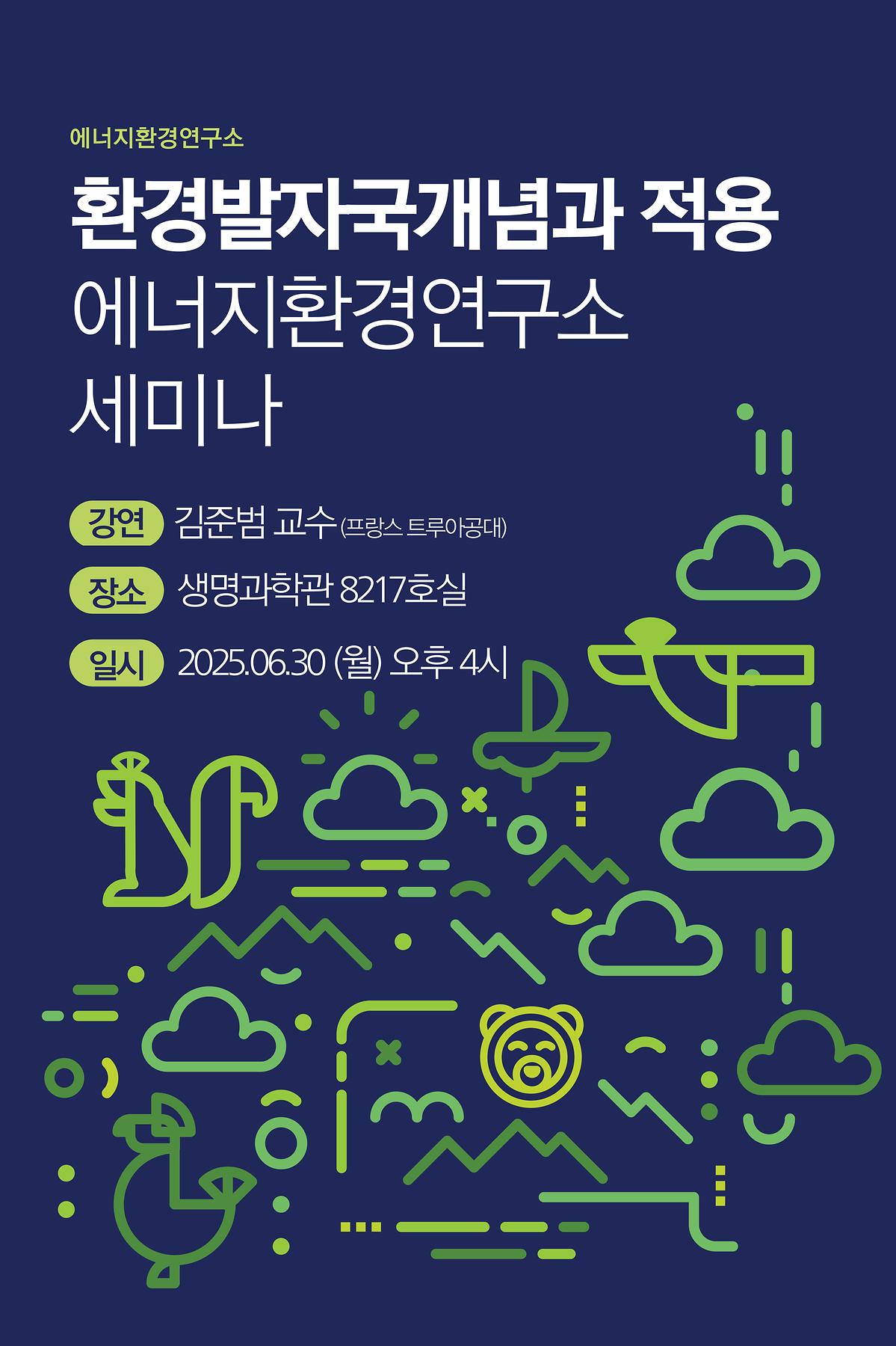 에너지환경연구소에서 "환경발자국개념과 적용" 세미나를 진행합니다.