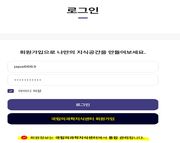 ②“국립의과학지식센터 회원가입” 클릭 (회원가입 시, 문자 본인인증 필요)