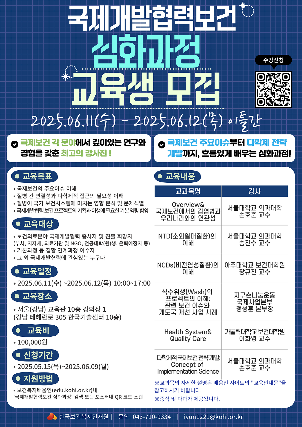 [대외활동] 2025년 국제개발협력보건 심화과정 교육생 모집