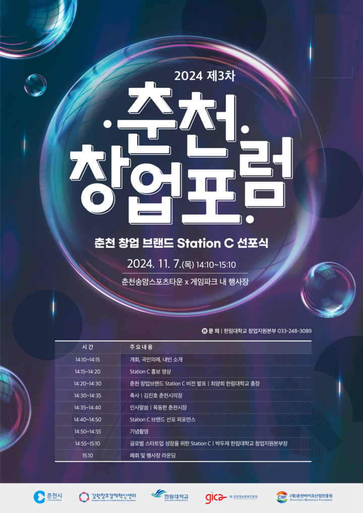 2024년도 제3차 춘천창업포럼 (StationC 비전선포식, 강원 바이오엑스포 제2회 춘천창업엑스포)
