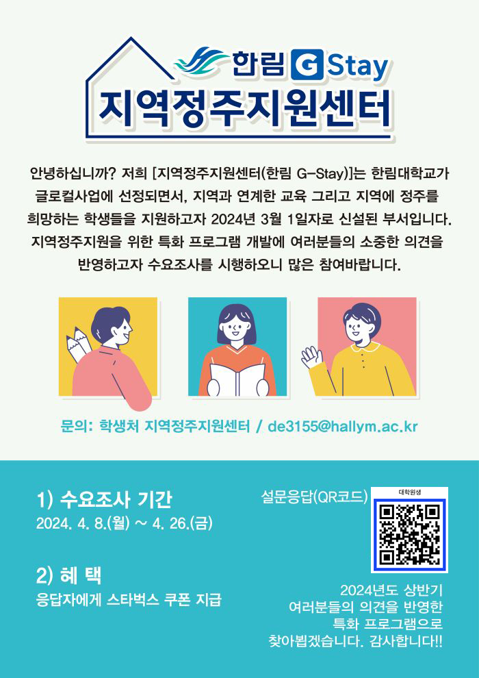지역정주지원을 위한 특화 프로그램 개발 수요조사(~4.26.금까지)
