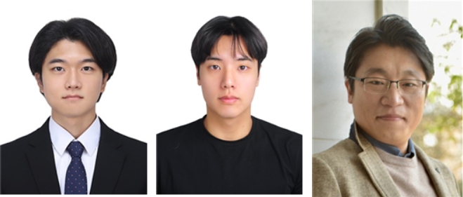 <사진:(좌)고정환 석박사통합과정생, 정석주 학생, 정인철 교수>