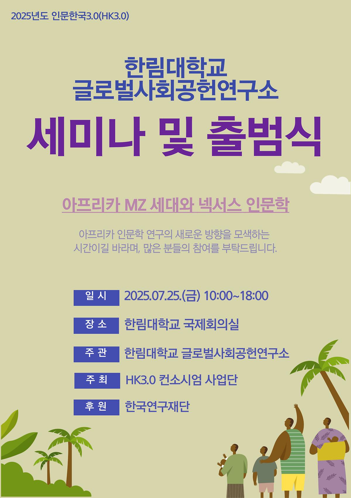 글로벌협력대학원 산하 글로벌사회공헌연구소 HK 3.0 사업 세미나 및 출범식을 진행할 예정입니다.