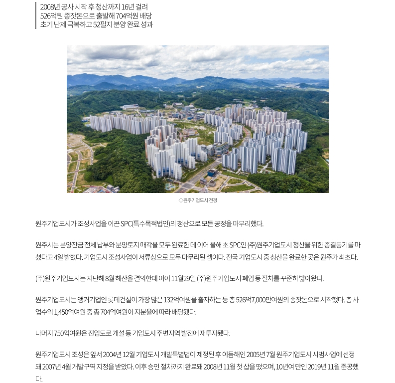 [원주시] 지정면 기업도시 마무리… 전국 기업도시 중 첫 사례