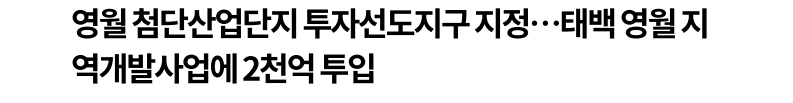 [강원특별자치도] 태백·영월 지역개발사업에 2천억 투입