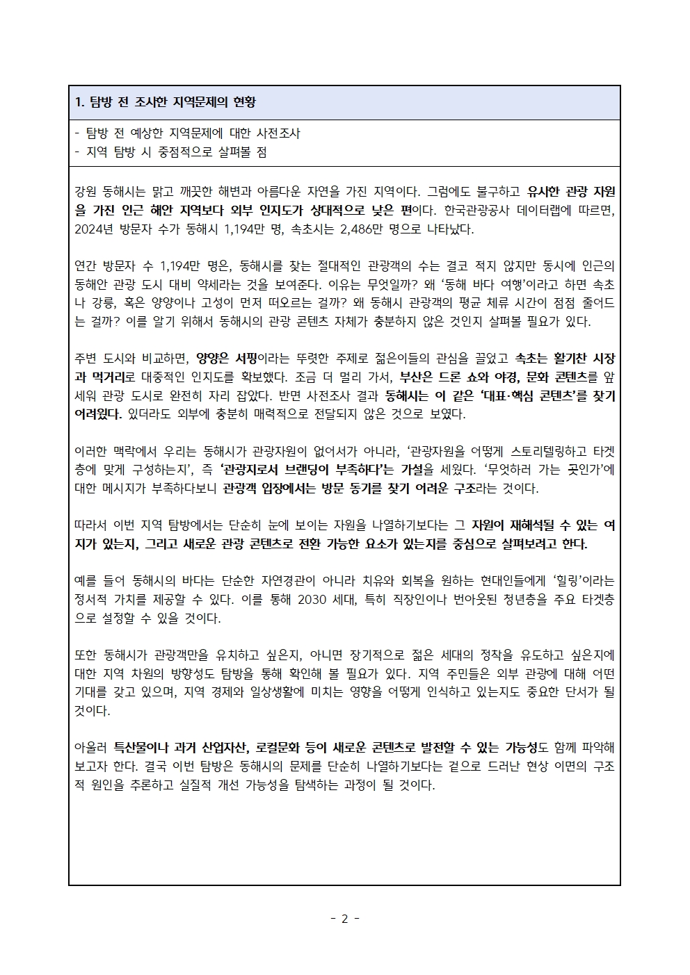 [G역탐방 in 동해] 지역문제 보고서(4팀)