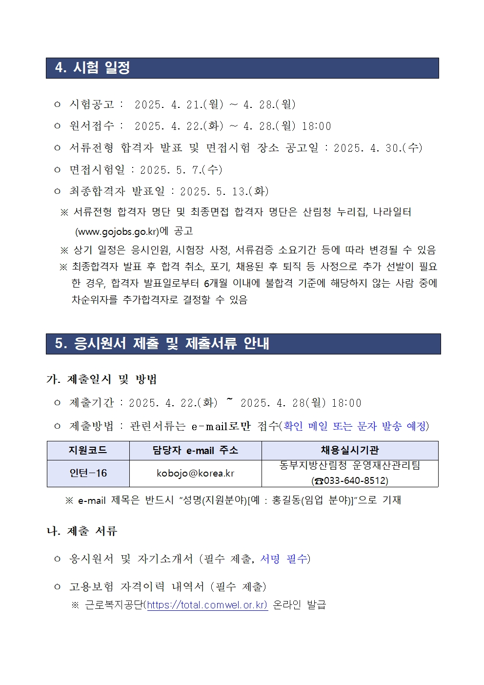 [동부청 공고 제2025-27호] 2025년도 산림청 청년인턴 채용 재공고.hwp