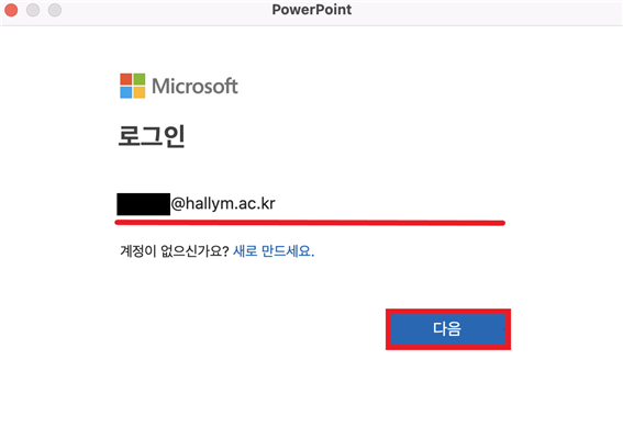 ※ 오피스 365 한림대학교 계정은 Windows OS에서 가입