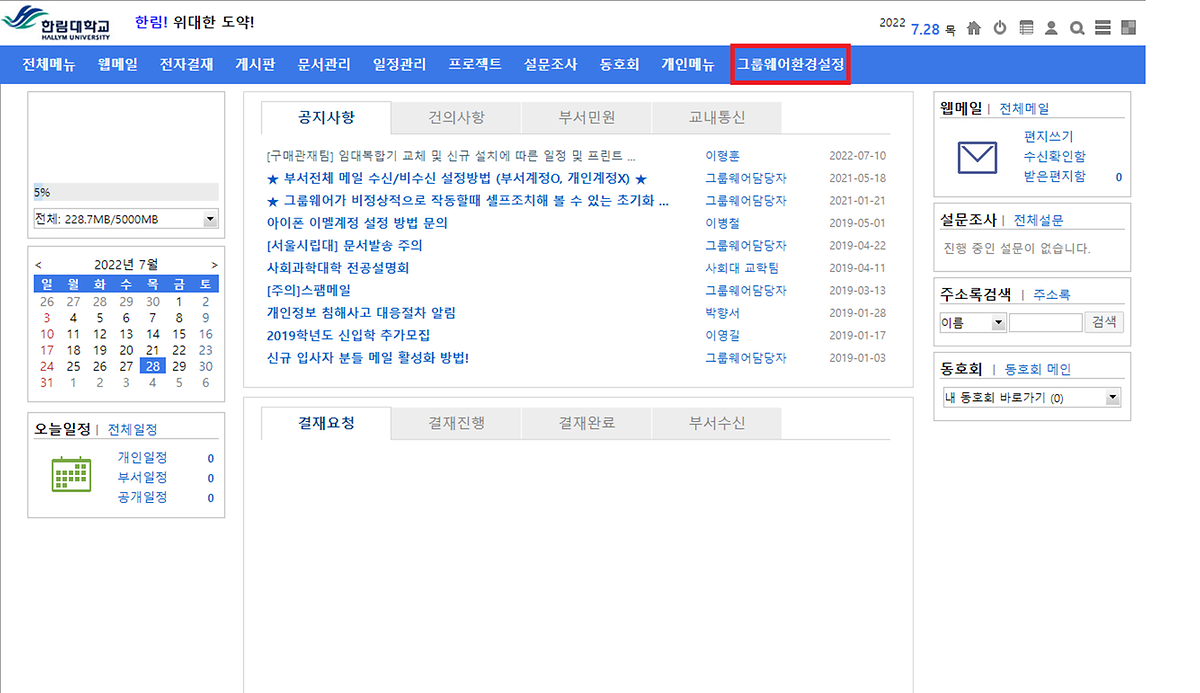 2. 좌즉 상단에 전자결재를 클릭합니다.