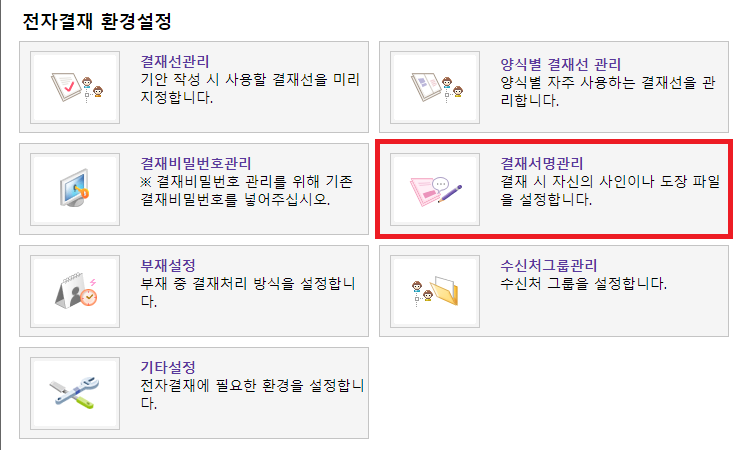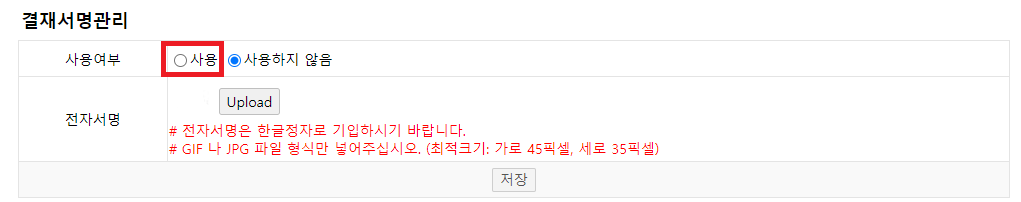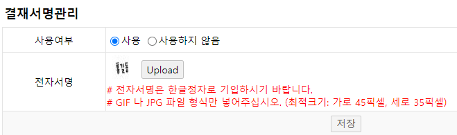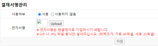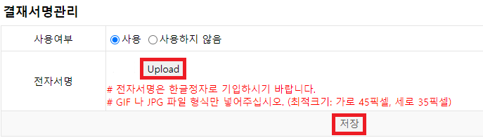 6. 서명 파일 등록 시 이미지와 같이 나타나시면 저장 누르시면 됩니다.