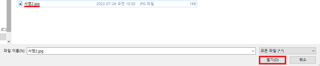 5. 업로드(Upload) 버튼을 클릭하여 JPG파일 형식인 서명 파일을 등록하고