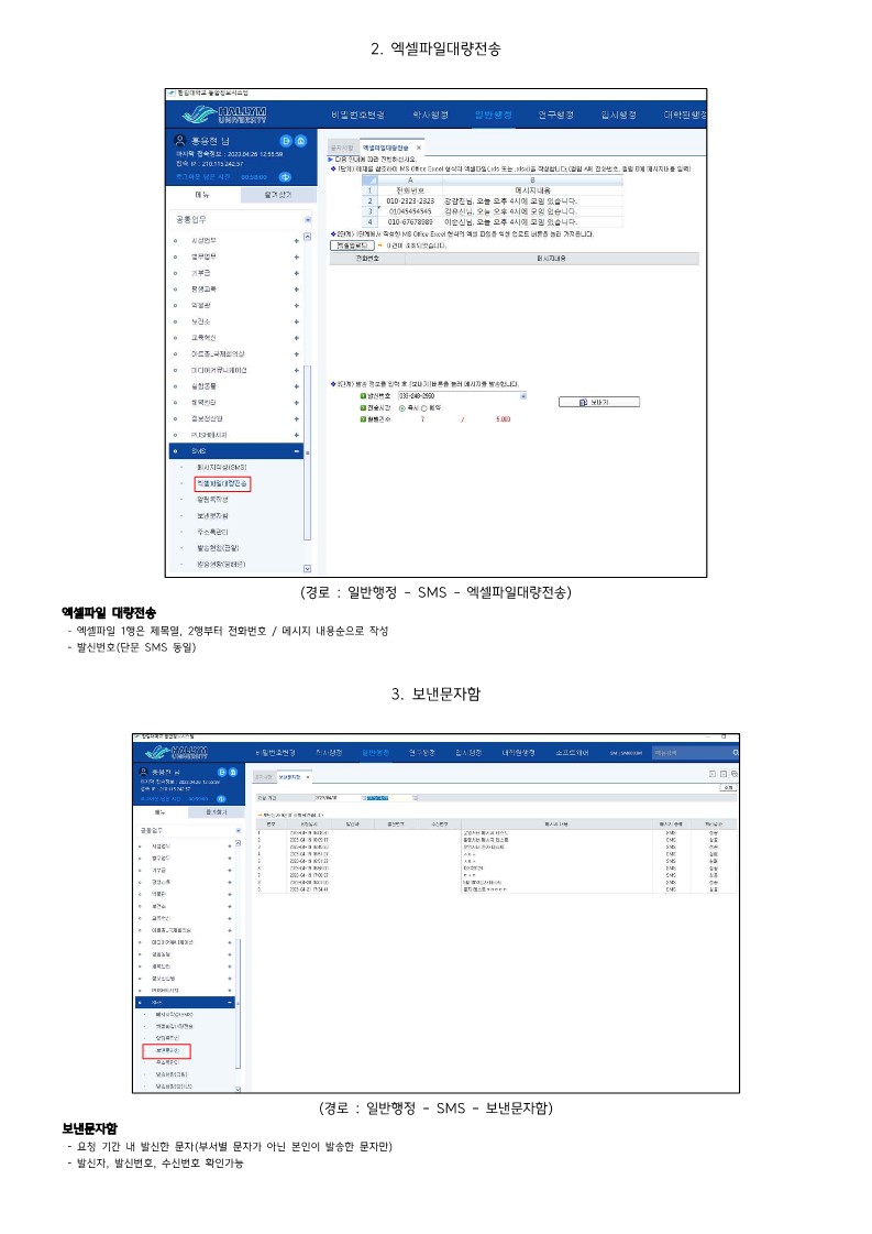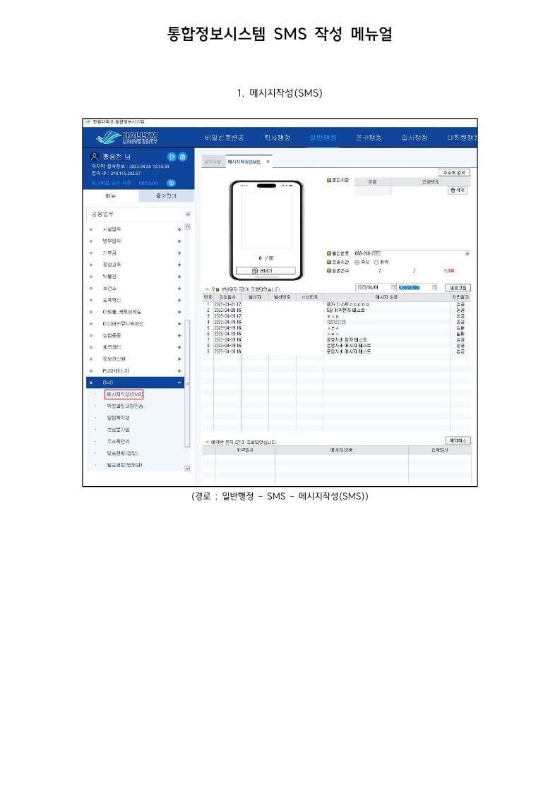 통합정보시스템 SMS 화면 메뉴얼