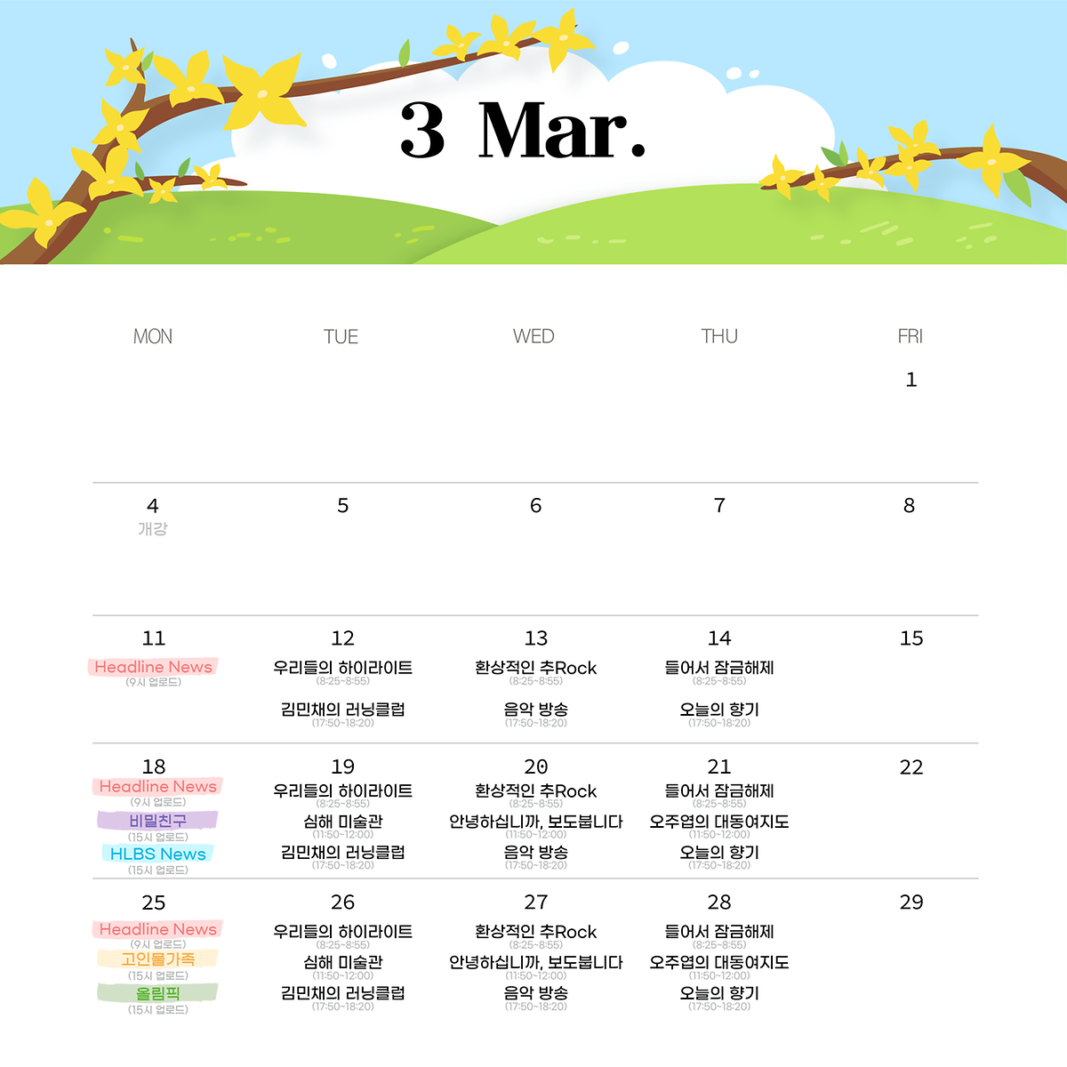 한림대학교 방송국 HLBS 3월 편성표