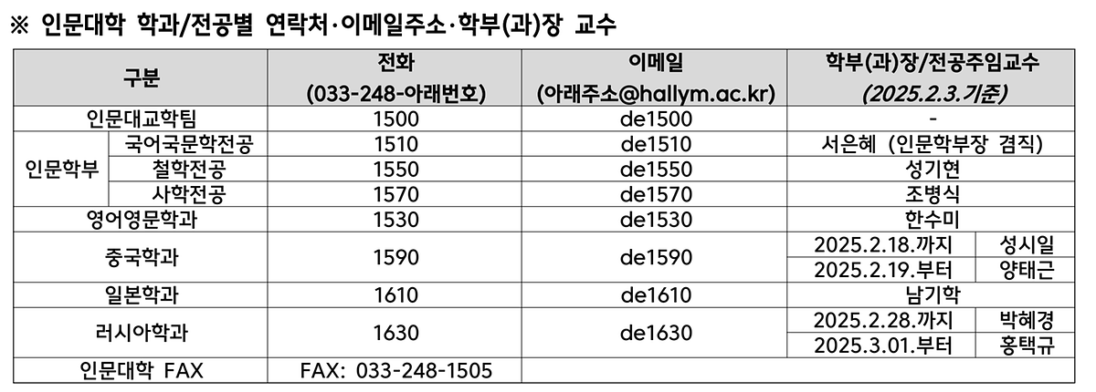 · 2025학년도 1학기 휴학 및 복학 관련 공지는 대표 홈페이지 - 교내 공지사항에서 확인 가능합니다.