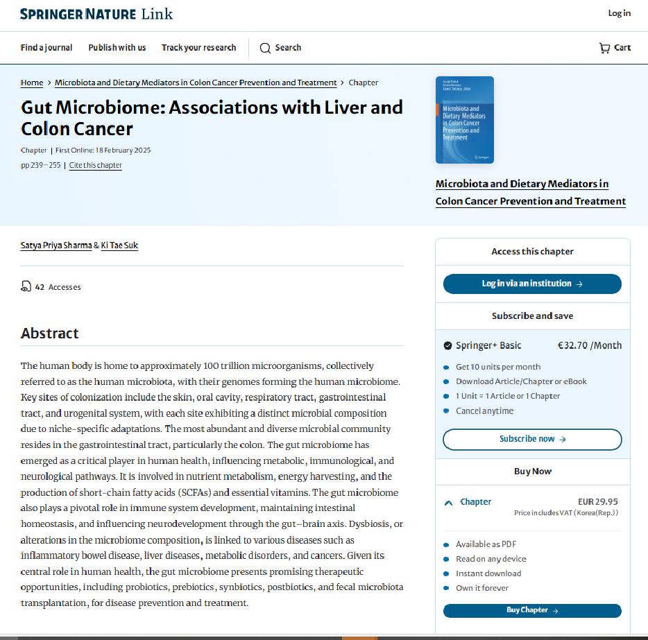 Congratulations to Dr. Satya Priya Sharma who has been published in Journal of Microbiota and Dietary Mediators in Colon Cancer Prevention and Treatment.