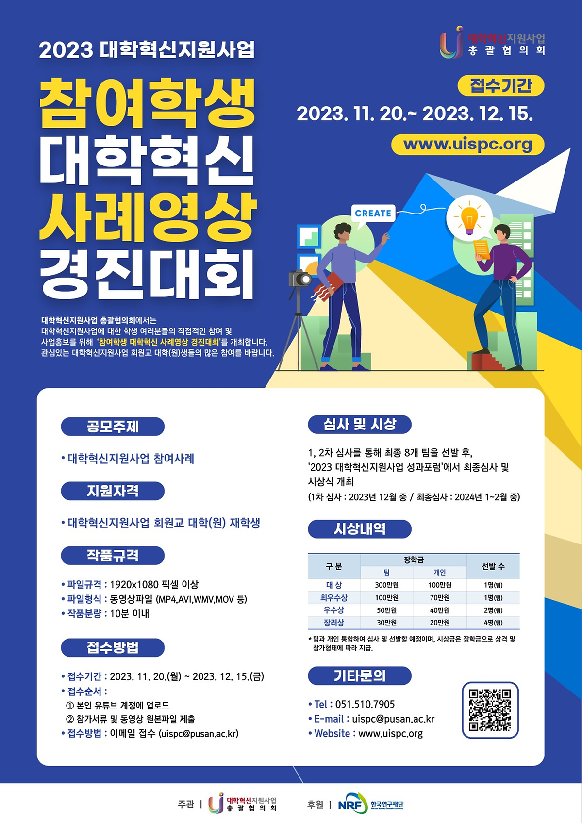 □ 문의: 대학혁신지원사업 총괄협의회(Tel. 051-510-7905, E-mail. uispc@pusan.ac.kr, Web. www.uispc.org)