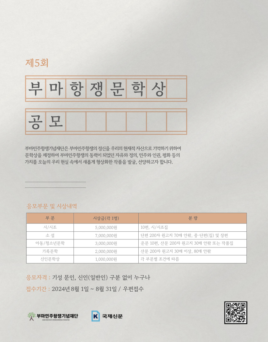 □ 문의 : (재)부마민주항쟁기념재단 마산사무소 부마항쟁문학상 담당(055-265-1018)