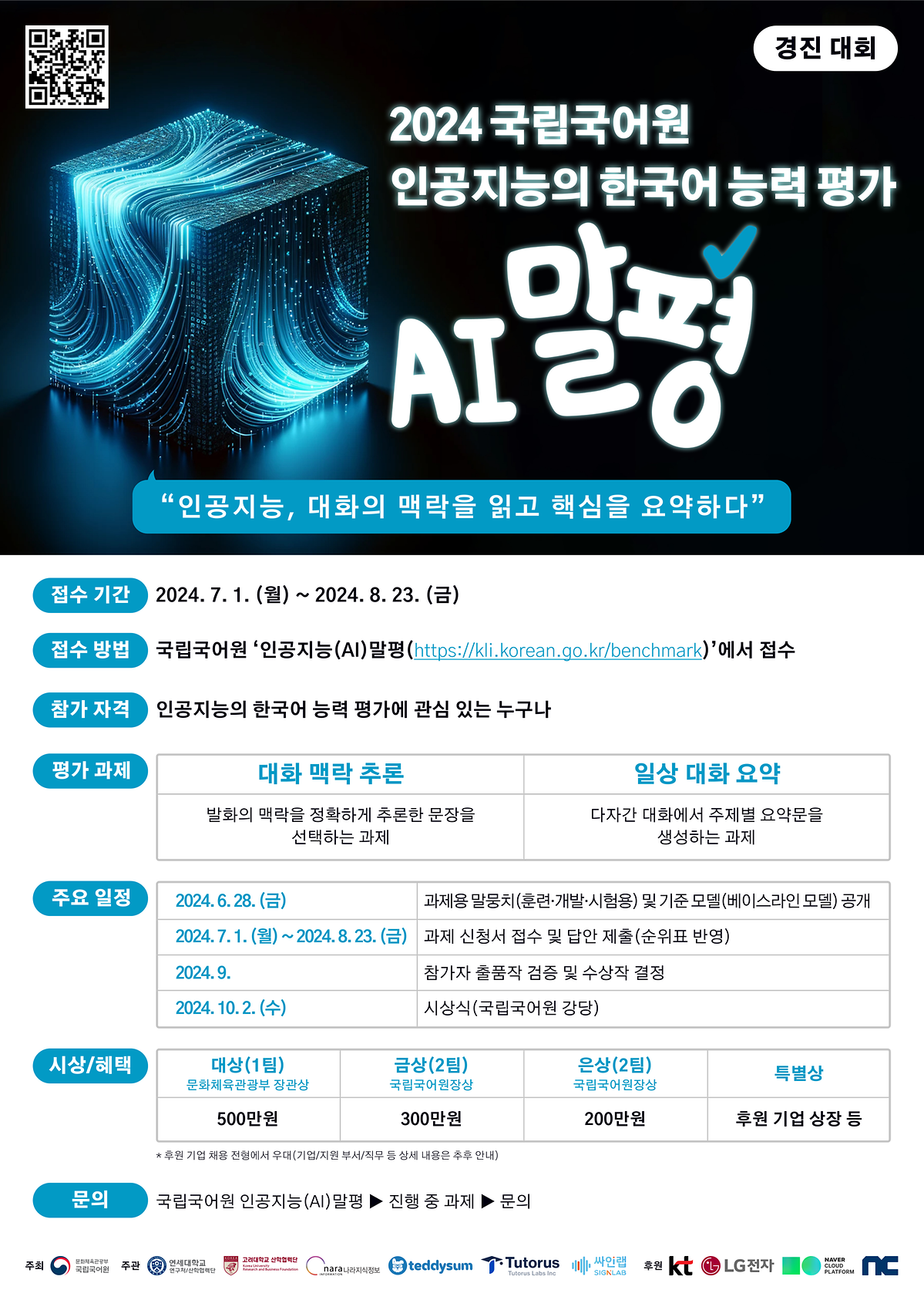 에 참여하실 연구·개발자들을 위하여 관련 평가 과제를 누리집에 공개 하였습니다.