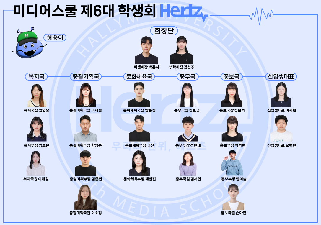 미디어스쿨 학생회 'Hertz' 조직도(24년 5월 기준)