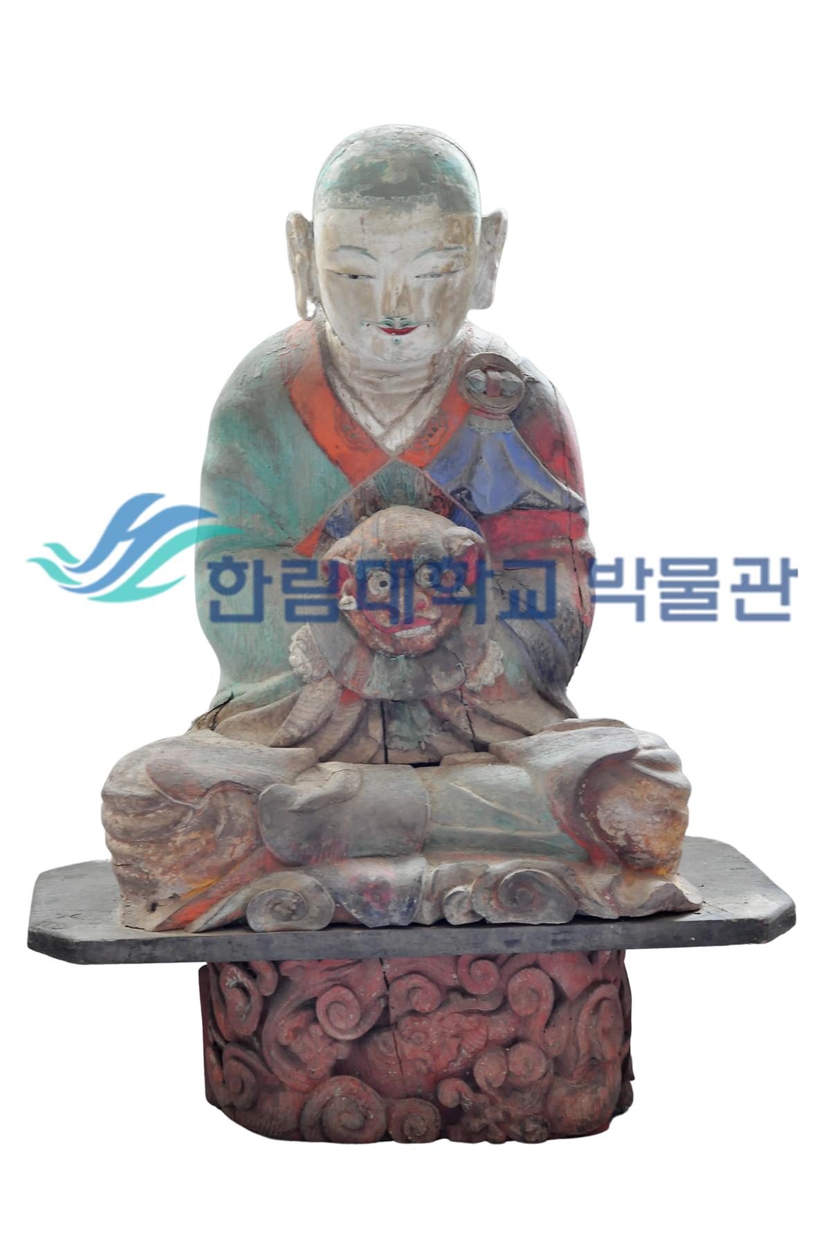 이번에 소개할 나한상 2구는 조선후기 나무로 조성되었습니다. 용과 구름이 화려하게 조각되어 있는 대좌(받침대)에 가부좌를 한 자세로 정면을 바라보고 앉아있습니다.