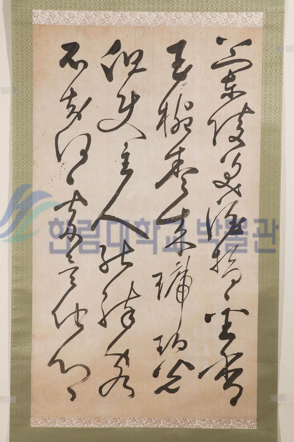 중국 당나라의 시인 이백(李白, 701~762)의 「객중행(客中行)」이라는 시를 초서(草書, 곡선으로 흘려 쓰는 한자의 서체)로 쓴 것으로, 이 글씨와 함께 이백의 다른 칠언절구(七言絶句, 중국 고전시의 한 형식으로 한 구절이 일곱 글자로 된 시)인 망여산오로봉(望廬山五老峰)과 두목(杜牧, 803~853)의 「박진회(泊秦淮)」 세 폭이 하나의 세트로 이루어져 있습니다.