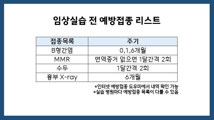 ✔ 임상실습 전 예방접종 목록 안내하니 확인하시기 바랍니다.