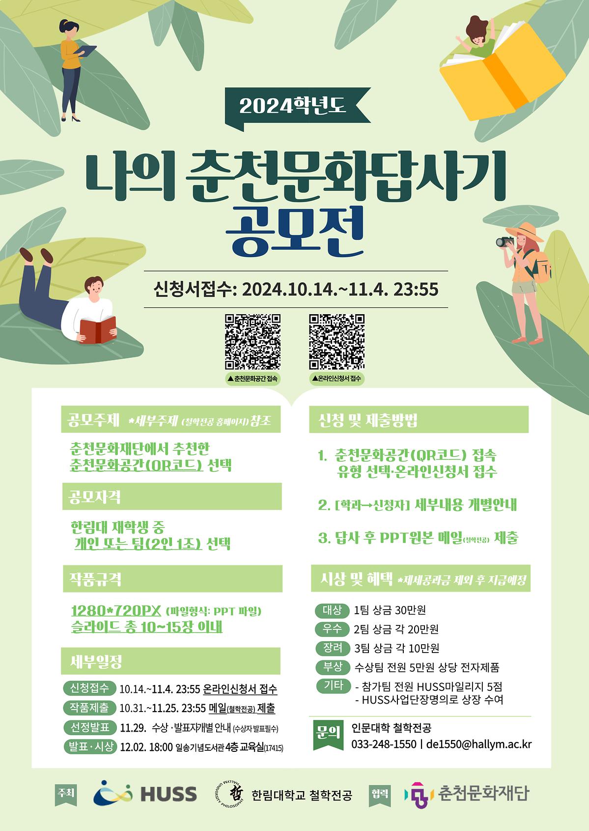 - 제출방법: 인문학부 철학전공 이메일주소(de1550@hallym.ac.kr)로 작품 송부