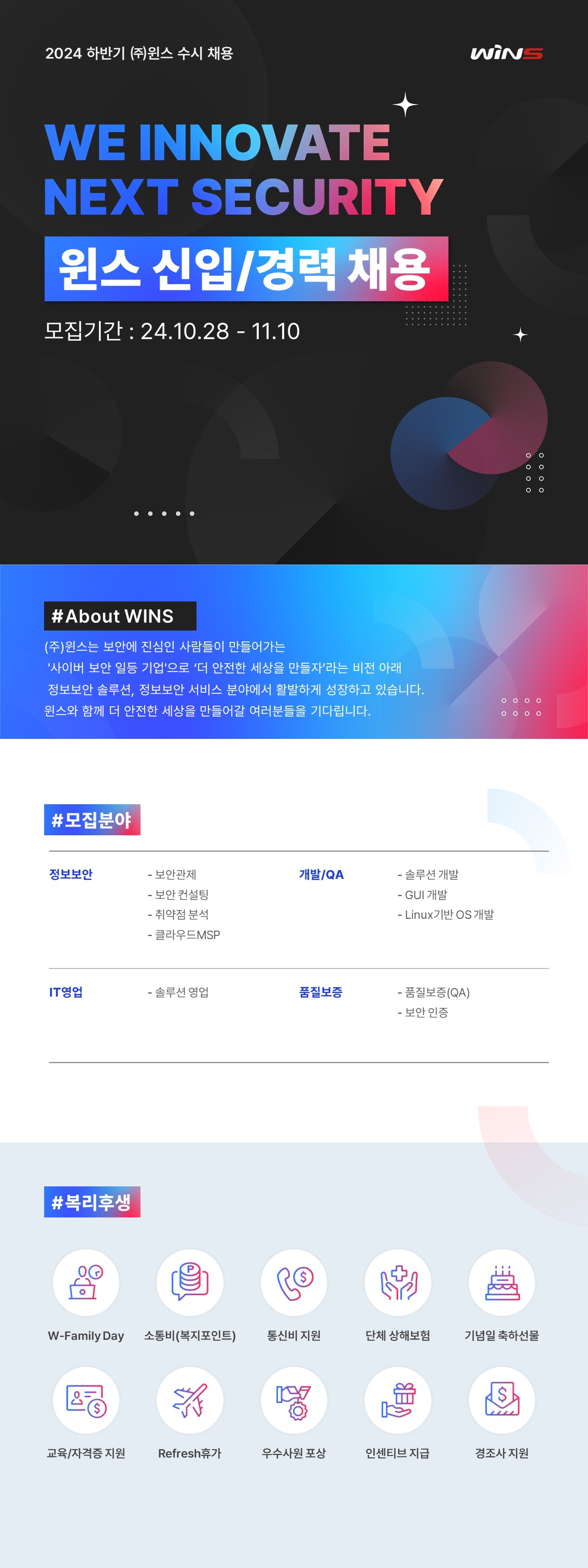 - 지원 방법 : 온라인 지원서 접수 https://wins21.recruiter.co.kr/career/careers