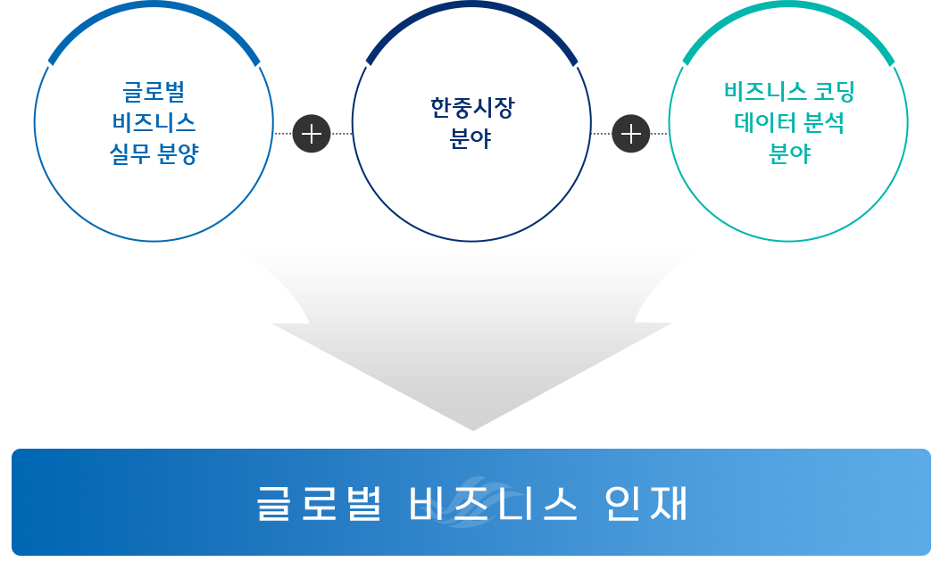 중국학과 교과목 중 한중포트폴리오분석 등 한국과 중국의 비즈니스 관련 과목과 경영학부의 무역실무, 국제마케팅 등 국제경영 및 무역 분야 관련 과목으로 운영하며, 국제통상론 등의 과목을 신규 개설하여 본 과정을 구성하였다. 본 과정을 통해 한국학생에게는 중국 비즈니스 전문 인력 양성 기회를 제공하여 취업 기회를 확대하고, 유학생에게는 한국 관련 통상 전문 인력으로 성장할 수 있는 교육을 제공하여 귀국 후 본국에서 취업할 수 있도록 한다.