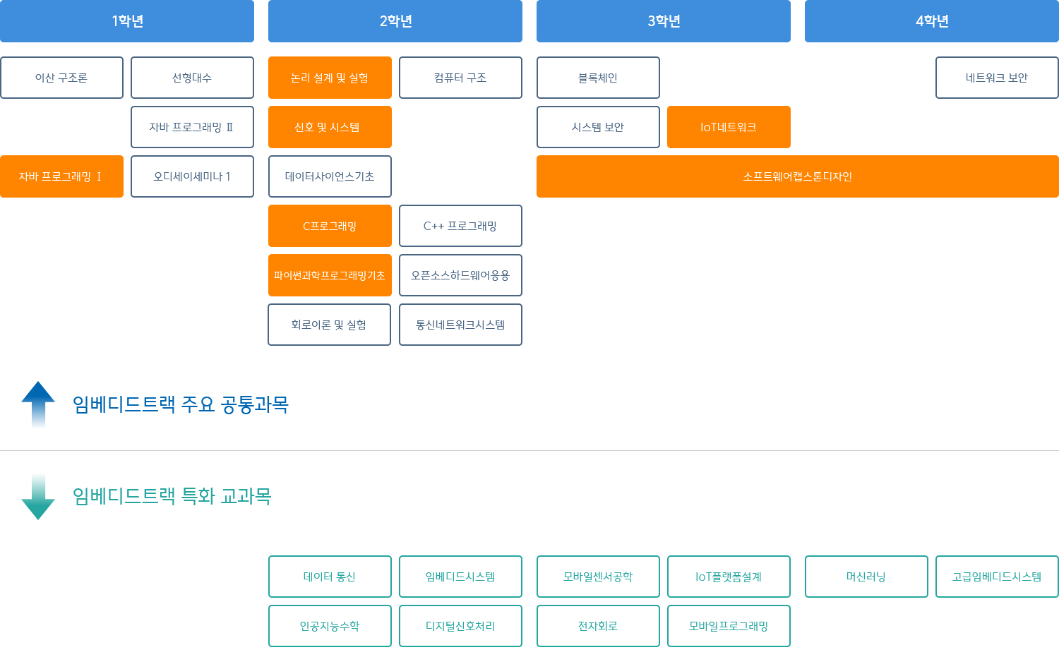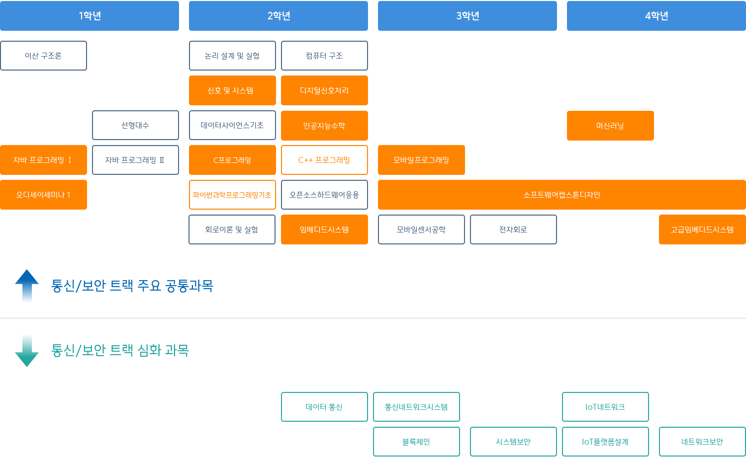 - 네트워크보안, 블록체인: IoT 시스템에서 발생할 수 있는 보안 문제의 해결 방안으로 최근 중요하게 적용되고 있는 다양한 정보보호기술을 학습